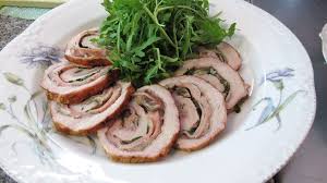 Carré de cerdo con corazón de ciruelas + ensalada de rúcula y cerezas.